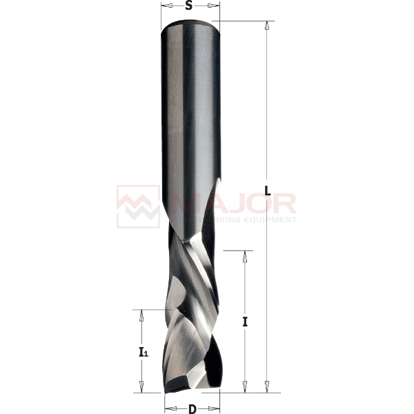 Used for cutting, copying, panel sizing and any routing applications on solid wood, wood composites, plastic materials and laminates. Use a high feed speed on well-clamped workpieces. Can be used on machining centres, point to point machines, CNC routers and hand-held routers equipped with chucks or adaptors.